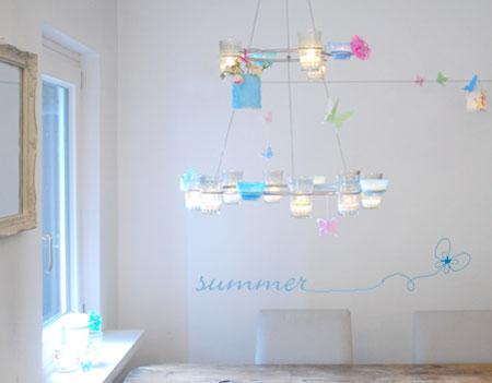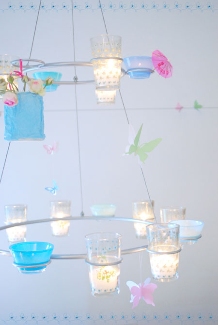wunderschön deine Deko. Die Schmetterlinge und die Schirmchen sind super! Und die vielen Blumen… Ganz besonders gefällt mir aber dein "Leuchter", den du je nach Saison so hübsch dekorierst!