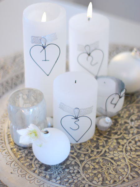 ..oh was für wunderschöne Deko! Die Idee mit den Drahtzahlen an den weißen Kerzen ist der Hammer, das merke ich mir für´s nächste Jahr!