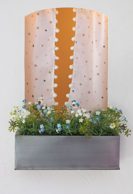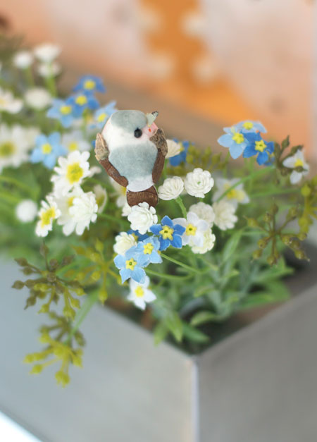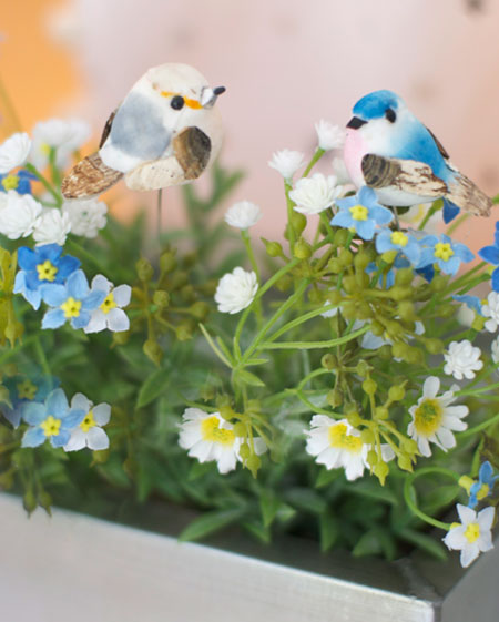 da durften natürlich auch die vögel nicht fehlen, die in den kleinen metallblumenkästen platz gefunden haben.