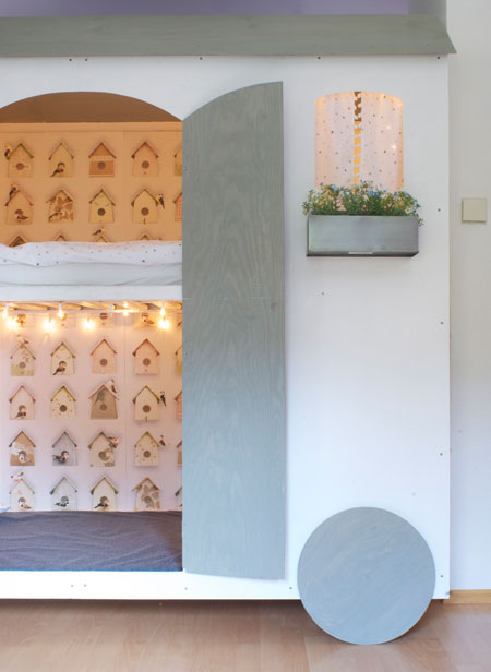 ….mein Gott wie süß ist das denn, ein wunderschönes Hochbett die Tapete, die Blumenkästen, wie das Bett umebaut ist, ein absoluter Traum und so hübsch mit dem Vogelhäuserl, superschön, dass Kind hat bestimmt süße Träume in so einem tollen Bett.