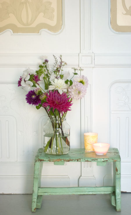 der sommerliche kochkringel (definition „kochkringel“ siehe hier) fand in weltschönster wohnung bei weltbegabtester dekoqueen „a*“ statt. eigentlich für draussen geplant, aber (man ahnt was jetzt kommt….) es war doch ein wenig frisch für die jahreszeit; so hat uns die gastgeberin drinnen empfangen. die deko war bunt und durch den zarten, reduzierten stil einfach ein sommerträumchen! am eingang stimmte schon mal ein willkommensstrauß auf das farbkonzept ein: