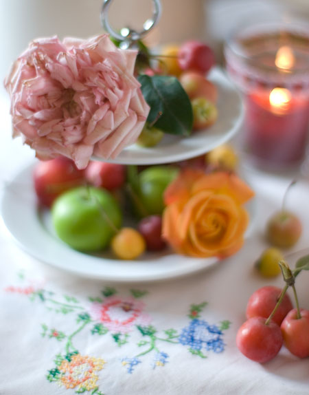 was für ne tolle tischdecke 😉 rosenäpfel sind meine lieblingäpfel! Sie duften und schmecken wirklich nach rosen, hmmm… die perfekte mischung, nicht nur auf dem foto. lg, t.