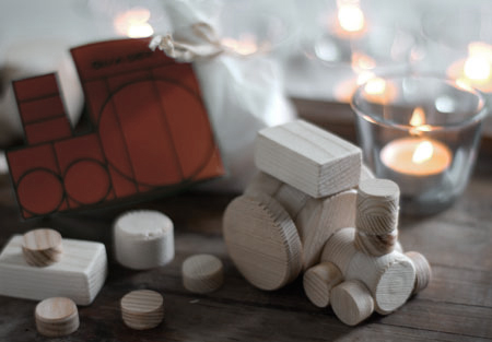 recycling-bausatz für lokomotiven aus den holzabfällen unseres niegelnagelneu gebauten waldkindergartenhauses.
