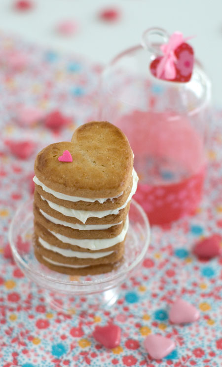 zum tee gibt es herz-kekse mit vanillecremefüllung zum turm gestapelt. der passt toll auf die minitortenplatte: