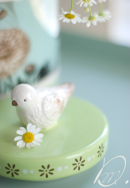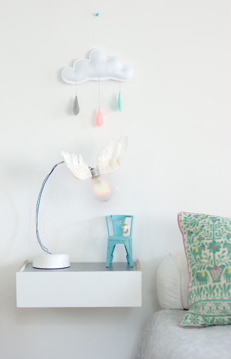 den habe ich auch noch in türkis. seinen platz hat er auf meinem nachttisch gefunden. in bester gesellschaft von lucellino-lampe (nachgebaut vom tollen mann), wendt und kühn engelchen und wolken-mobile (von smallable).