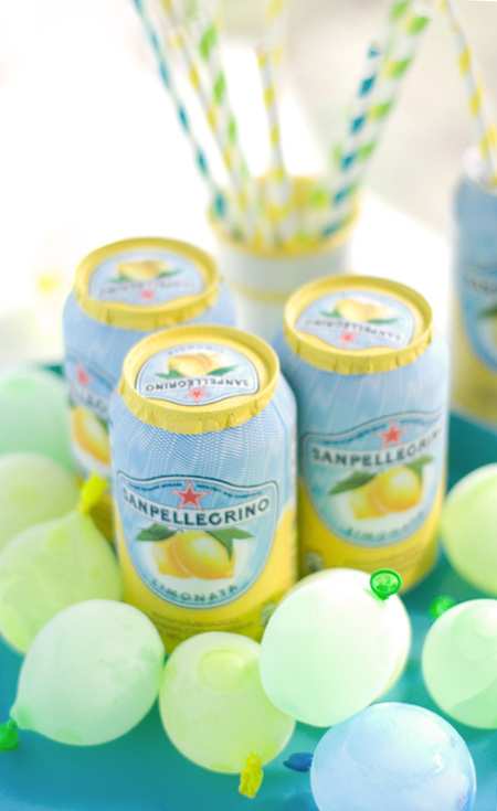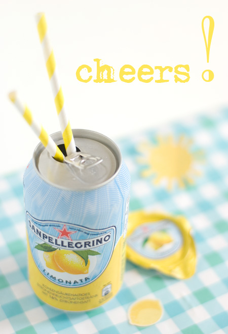 zum anstossen gibt`s die leckere zitronenlimonade von san pellegrino. wir haben die dosen mit gefrorenen wasserbomben gekühlt. das fand das kind sehr amüsant 🙂
