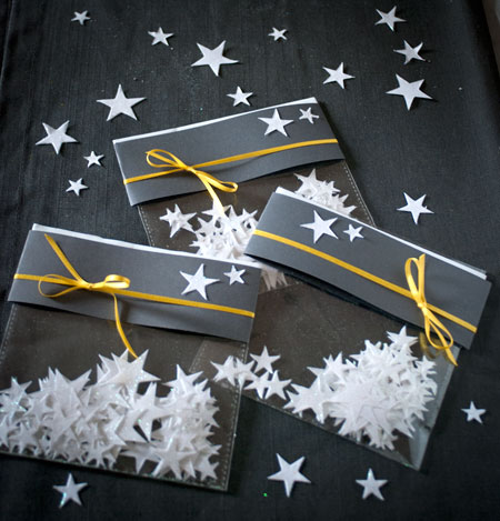 ….auch welche zum mitnehmen! das waren die give-aways für die gäste: je ein tütchen mit glitzer- sternenkonfetti.