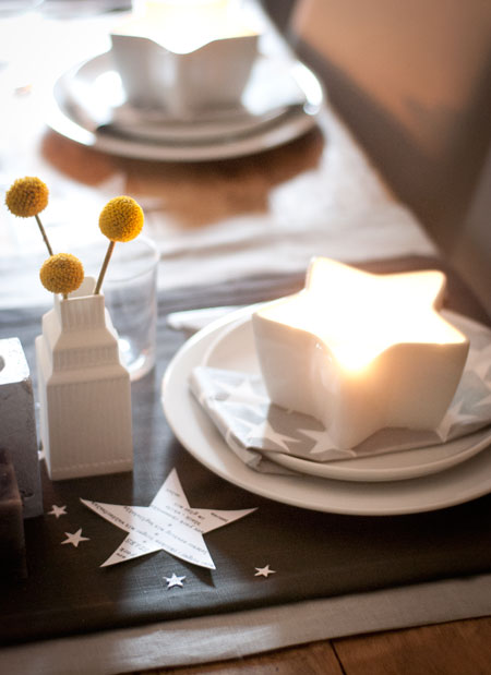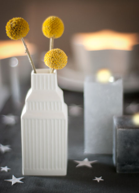 die gelben Farbtupfer kommen so toll zur Geltung mit dem dezenten grau/weiss! Kerzen gehören einfach immer dazu und mir gefällt die Idee besonders die Porzellanschalen dazu zu verwenden. Auch das Menu hört sich klasse an!