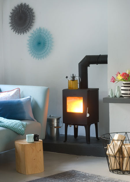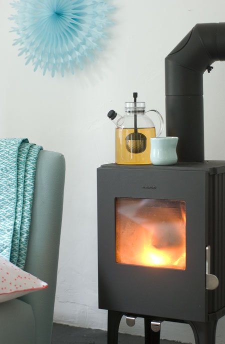 im zuge unserer renovierungsaktion im letzten jahr, haben wir uns vom offenen kamin getrennt und uns für eine lösung mit holzofen entschieden. der heizt den raum jetzt viel besser auf und ist zudem auch noch hübscher 😉 bei der entscheidung, welches modell wir wählen, haben uns wieder einmal die dänen überzeugt. so ist dieser klassisch, schlichte „herr“ morso bei uns eingezogen. und mit ihm, weil es holzöfen ja leider nicht in mint gibt, auch die farbe schwarz-anthrazit. ganz ungewöhnlich für mich, hat mich das aktuelle lieblingsteil zum dekorieren mit schwarz-grauen tönen inspiriert. in kleiner dosierung wohlgemerkt. begleitet wird der neue farbton von shop-frischen teilchen, wie kissen, decken, kerzen, vasen und russsichen püppchen in den saisontrendfarben coral-rose und aschblau. alles in allem ist ein allseits beliebter platz am feuer entstanden, der fast immer von mindestens einem waldhausbewohner besetzt ist.