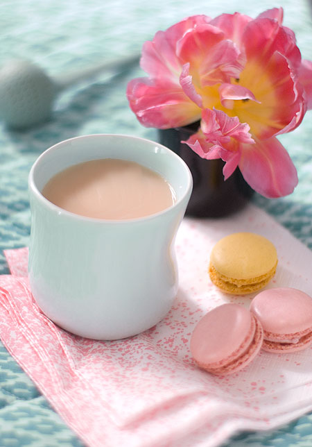 perfekter nachmittag: der ofen bollert und ich nehme meinen tee mit ein paar leckeren macarons am warmen plätzchen ein.