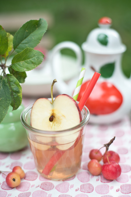 für die aufhübschung der rose-apfelschorle haben wir dünne apfelscheiben mit ins glas gegeben.