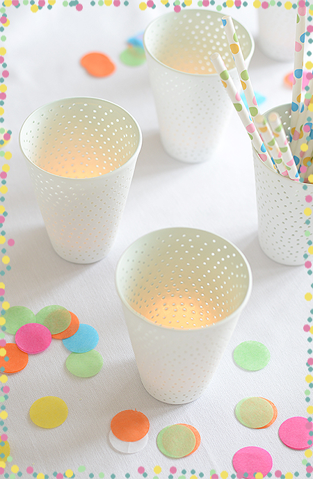 *konfettilichter, bunte porzellanbecher, weisser porzellankrug und anderes konfetti: wunderschoen-gemacht shop