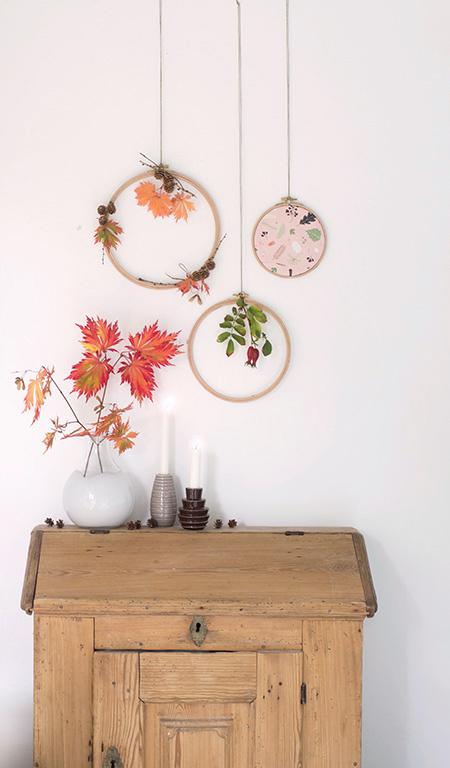 ….. der herbst ist da! so wunderschön hat er sich die letzten tage präsentiert! bei herrlichem sonnenschein habe ich die reitstunden der tochter genutzt und bin ein bisschen über die anliegenden, herbstlichen streuobstwiesen gelaufen – habe mir hier und da ein äpfelchen oder birnchen stiebitzt und jede menge andere herbstfrüchte und bunte blätter fürs dekorieren gesammelt. einige der schönheiten habe ich in stickrahmen geklemmt und damit das holzschränkchen im schlafzimmer herbstfein aufgehübscht.