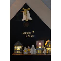 Honeycomb-Anhänger "Bell - Cream" von Bungalow DK in Cremeweiss mit Glittergold-Detail. Die Hängeglocke besticht durch ihre dekorative Wabentechnik und dem glitzergoldenen Glockenschlegel. Der Anhänger ist aus Papier, wird aufgeklappt und hält mittels Magneten. Ein wunderschöner Christbaumschmuck oder als Geschenkverpackungsverschönerung. In drei Größen bestellbar.